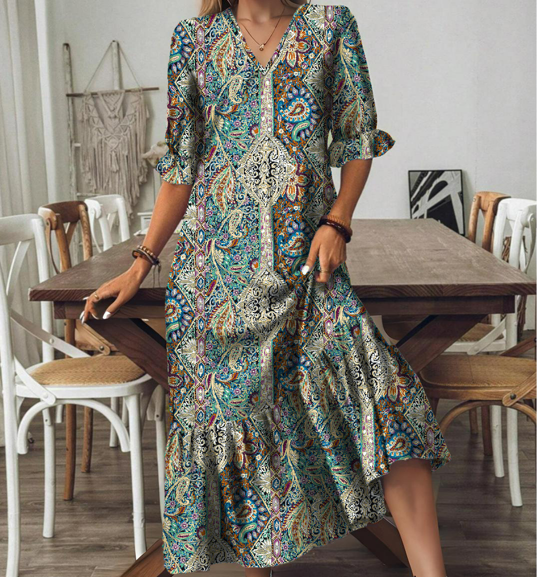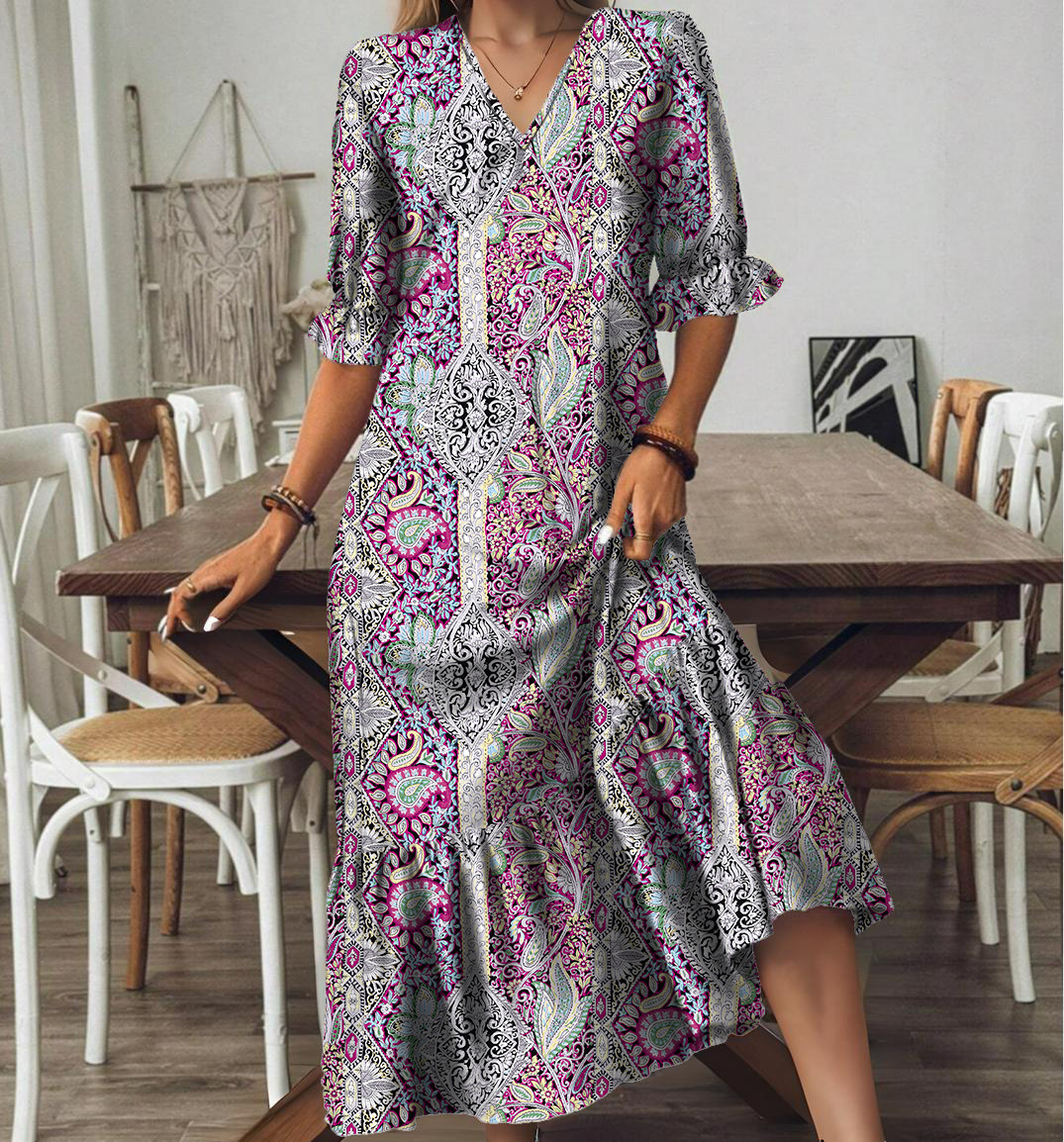 New Summer V-Neck Long Dress For European And American Styles
