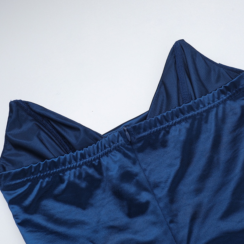 Womens Deep-V Waist-Cinching Satin Split Dress