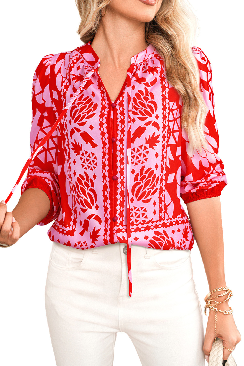 Womens New Pointed-Collar Printed Long-Sleeve Cardigan Shirt