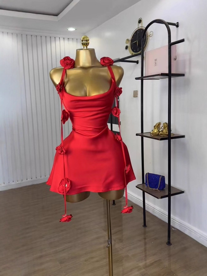 Womens Sleeveless Strap Dress With 3D Floral Design